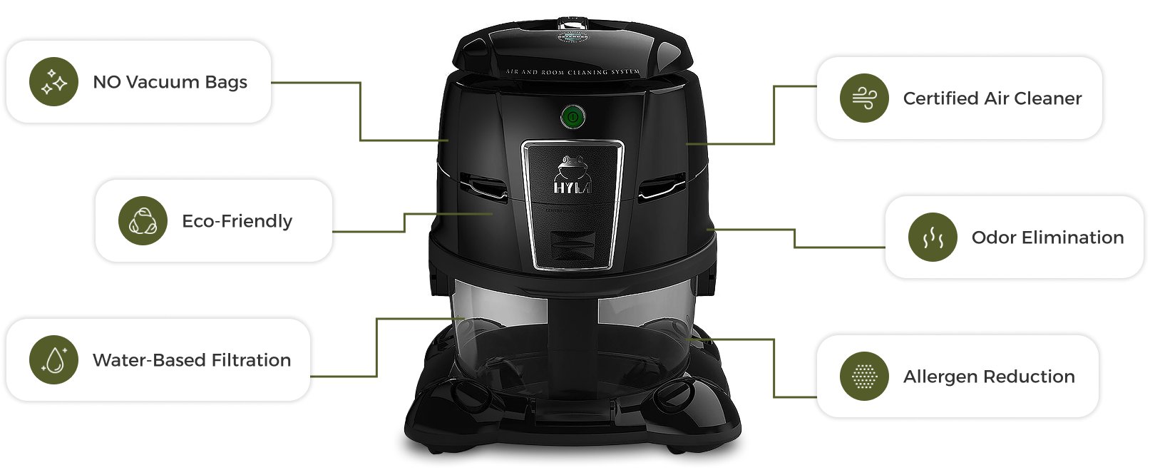 Your HYLA EST is not just a vacuum—it’s a complete Air & Room Cleaning System. While vacuum cleaners often release fine dust and odors, HYLA EST captures and traps all particles in water. No bags, no clogged filters, no dust recirculation—just fresh, clean air and spotless surfaces every time.